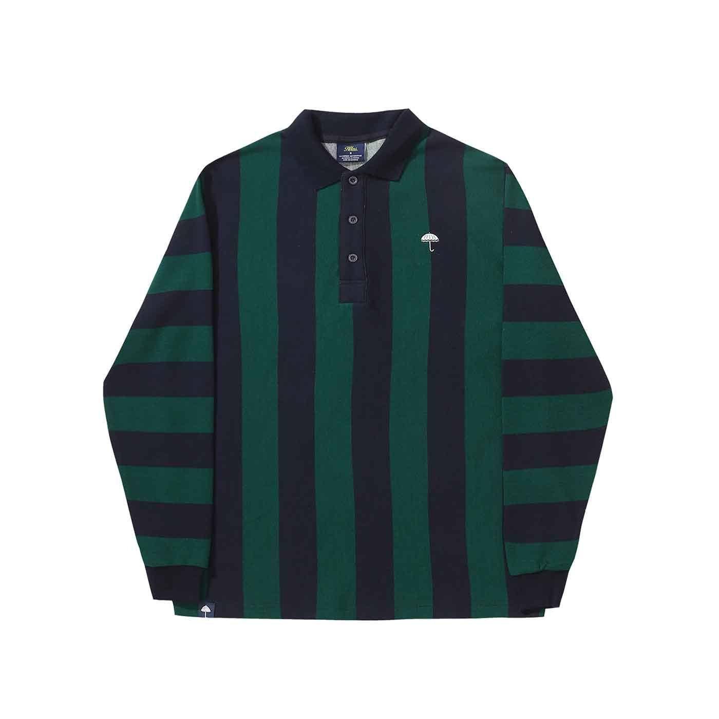 Helas Ray Striped Longsleeve Polo Shirt Navy Green