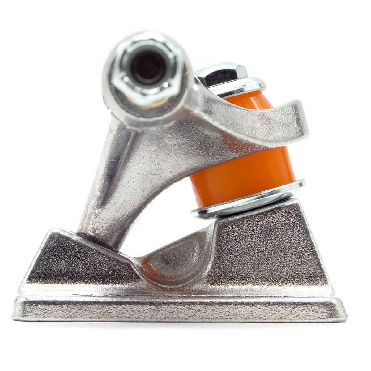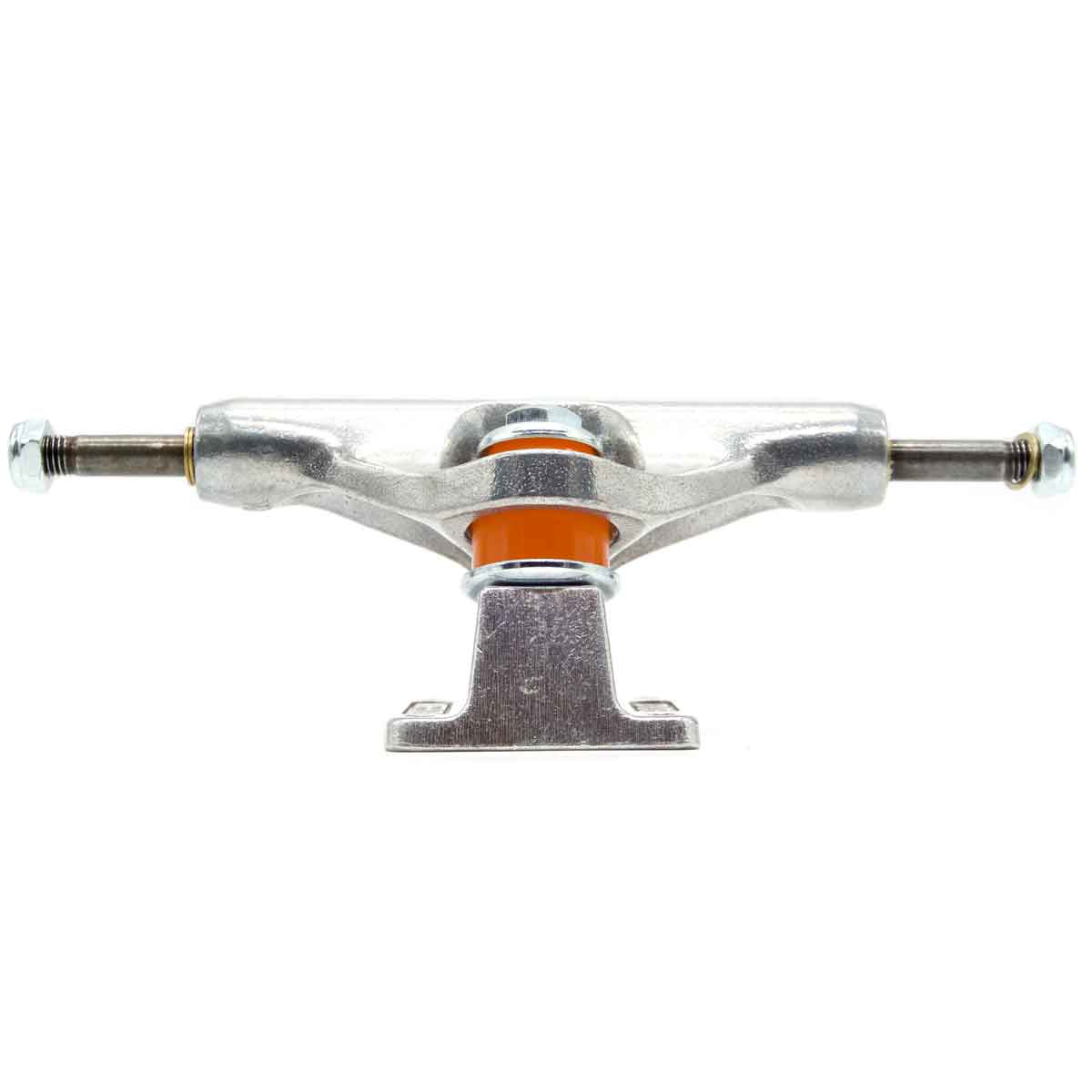 ACHTUNG! Achsen werden einzeln verkauft. Für ein Paar Achsen bitte zwei Stück wählen. Die Mids sind die etwas niedrigere Version von Independent Trucks. Indy Mids sind 52 Millimeter hoch und damit 3 Millimeter niedriger als standard Indy Achsen. Mid Trucks bringen Dich näher zum Boden was dir etwas mehr Kontrolle bringt, allerdings etwas zu Lasten Deines Pops geht. Durch das neue Design mit dem Inverted Kingpin konnte bei der Mid das einzigartig Gute Lenkverhalten für das Independent steht erhalten werden und durch den etwas kürzeren Kingpin mit dem flachen Kopf ist er Dir nicht im Weg bei Smith und Feeble Grinds. Die Polished Mids haben eine silberne Polished Baseplate mit silbernem Polished Hanger, Orange Medium Lenkgummis und silberne Muttern. Baseplate und Hanger aus stabilem 356 T6 Aluminium, Achsstift aus 4140 Chromoly Stahl, Stabiler Grade 8 Kingpin. 129er sind am besten geeignet für Decks von 7.5 bis 8.0 Inch Breite. Axle Breite: 7.6 Inch, Hanger Breite: 127 Millimeter