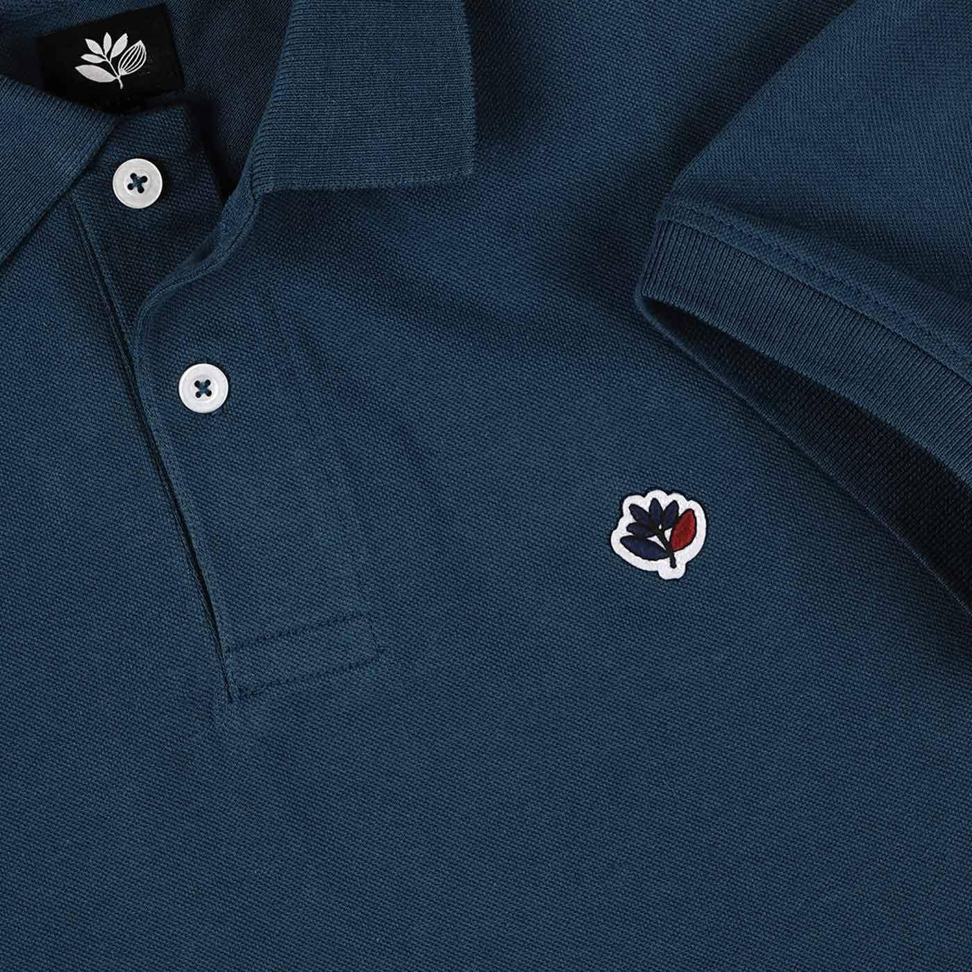 Magenta Plant Pique Polo Shirt Petrol Blue