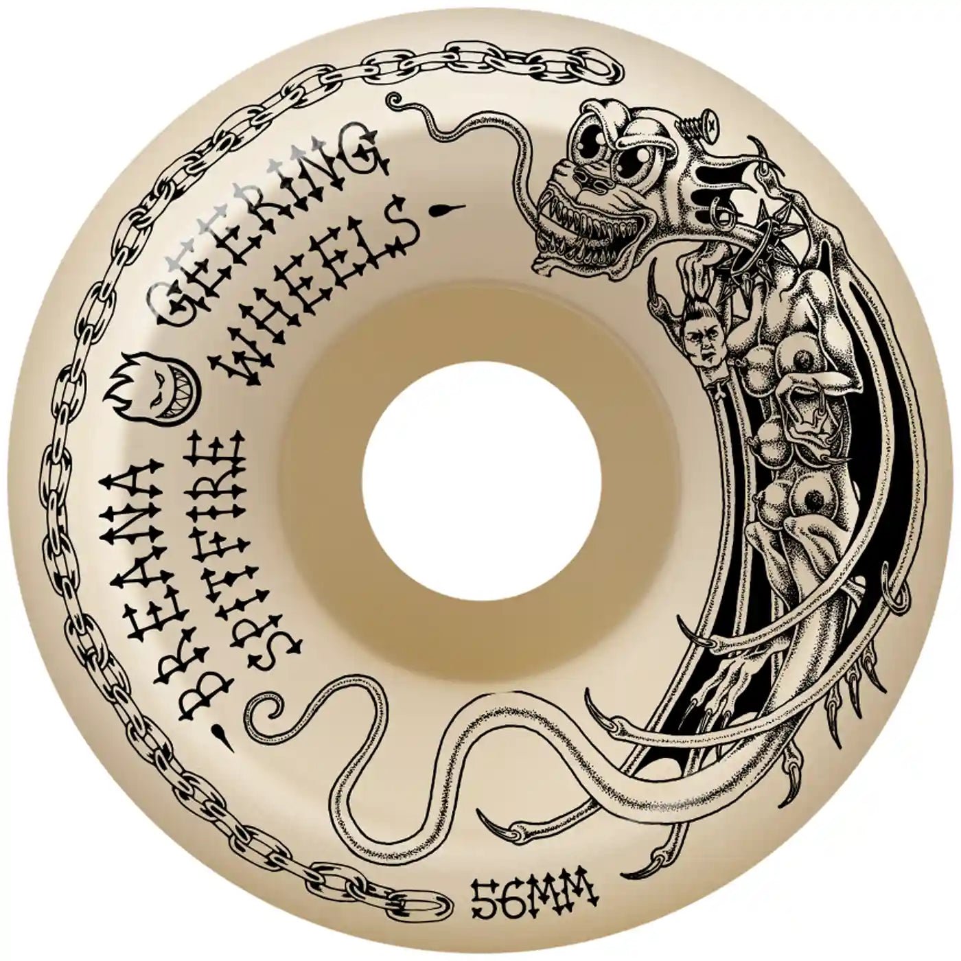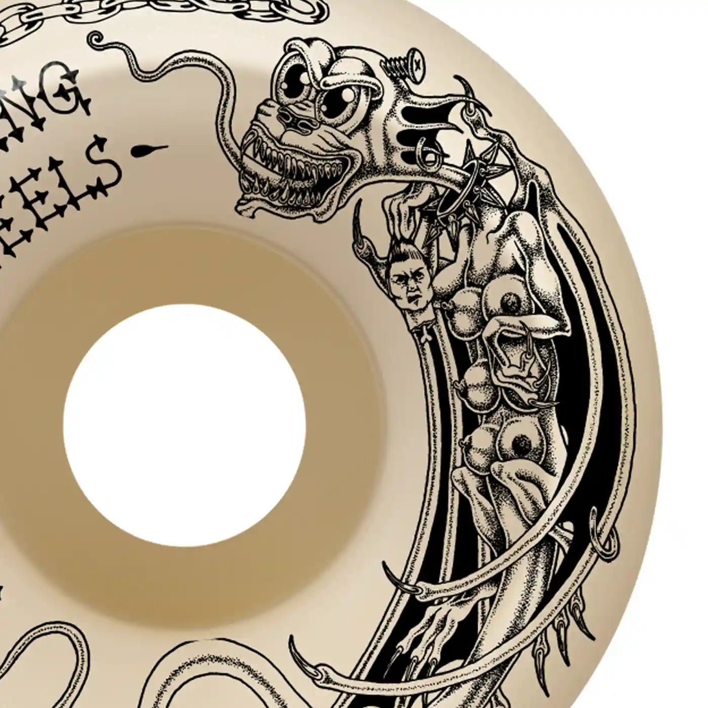 The Tormentor are Conical Full are Spitfire skateboard wheels.