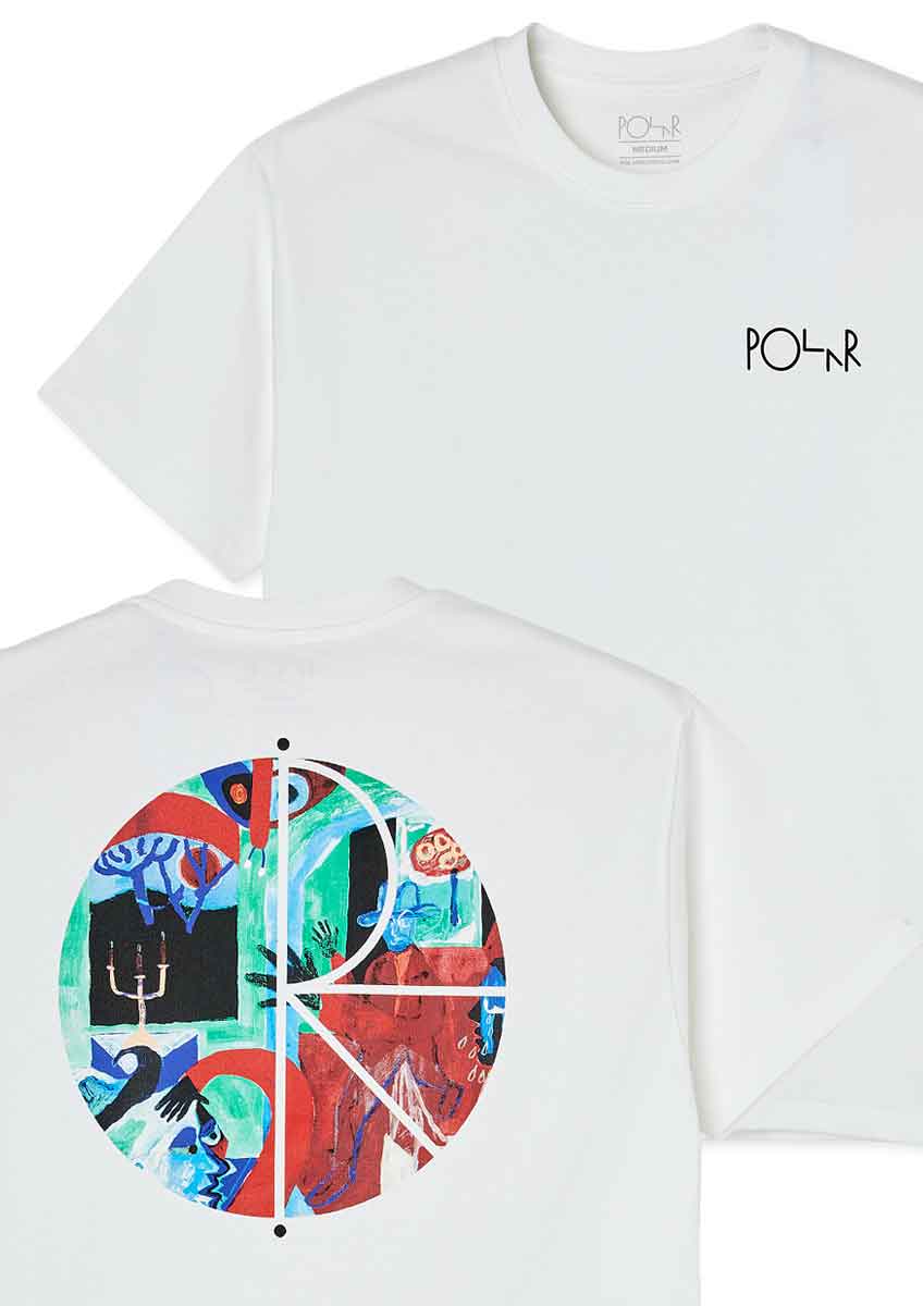 The Moth House Fill is a short sleeve tee from Polar Skate Co. with a Polar Stroke logo print on the left chest and a Mouth House Fill logo print on the back