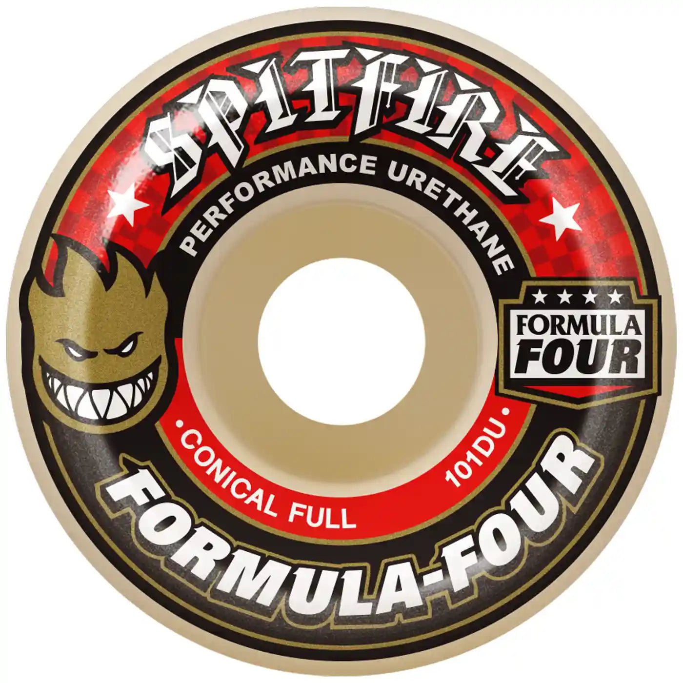Spitfire's Conical Full Shape is tapered with a slightly wider tread for durability and more control, even at high speeds
