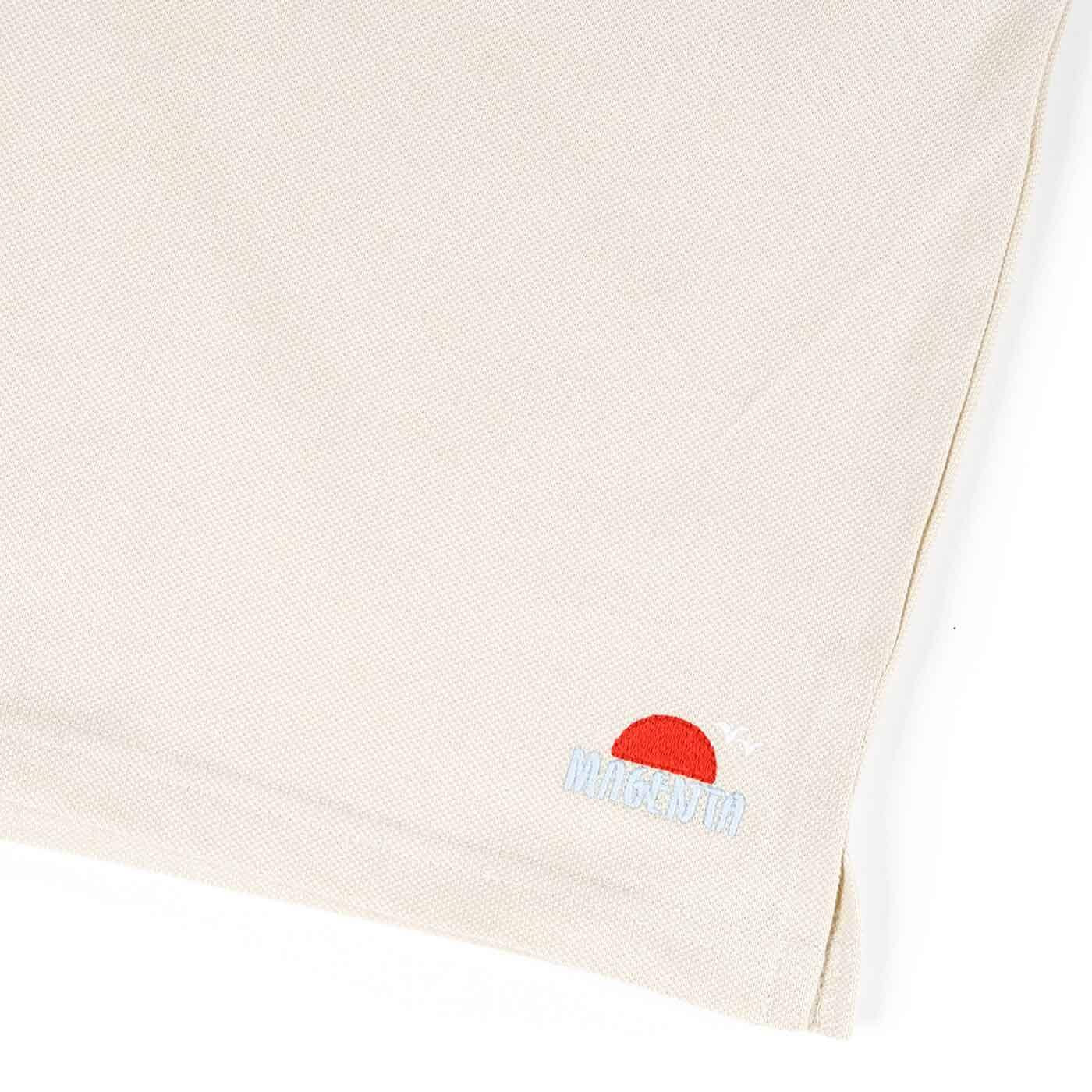 Magenta Sunset logo on the left leg