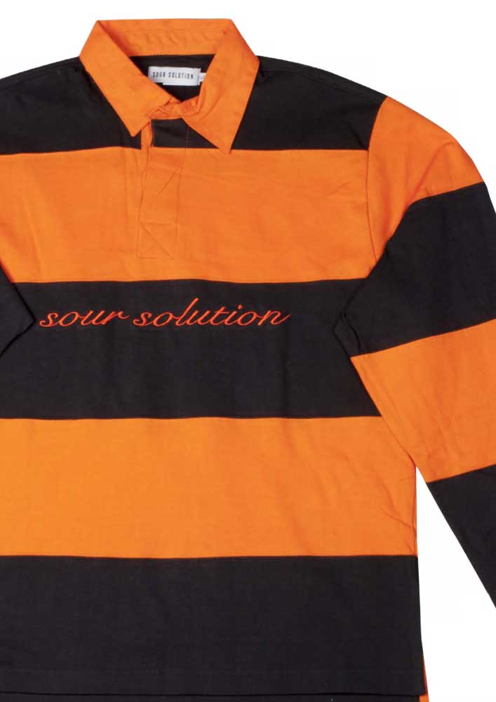 Sour Solution Rugby Polo Shirt Black Orange