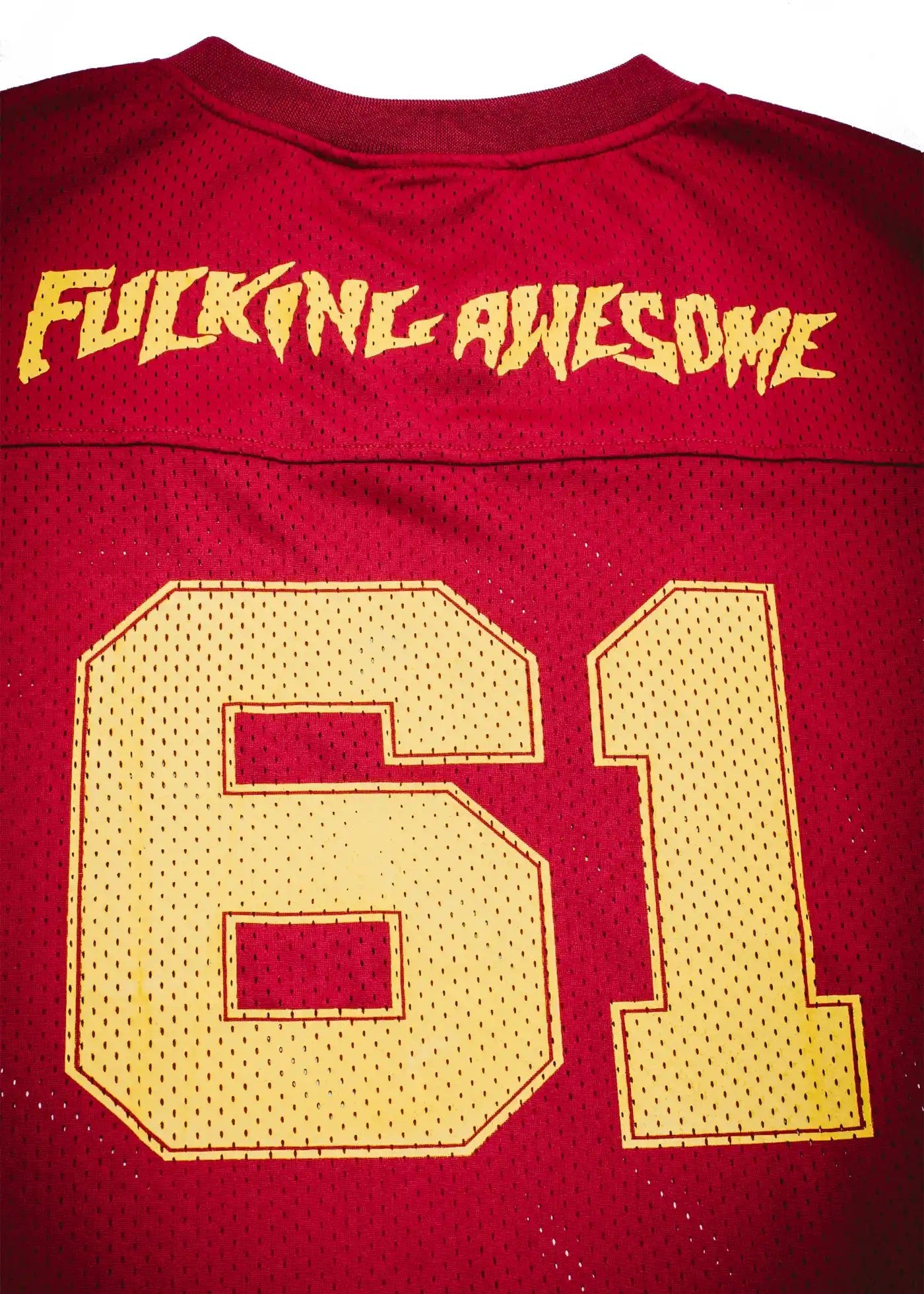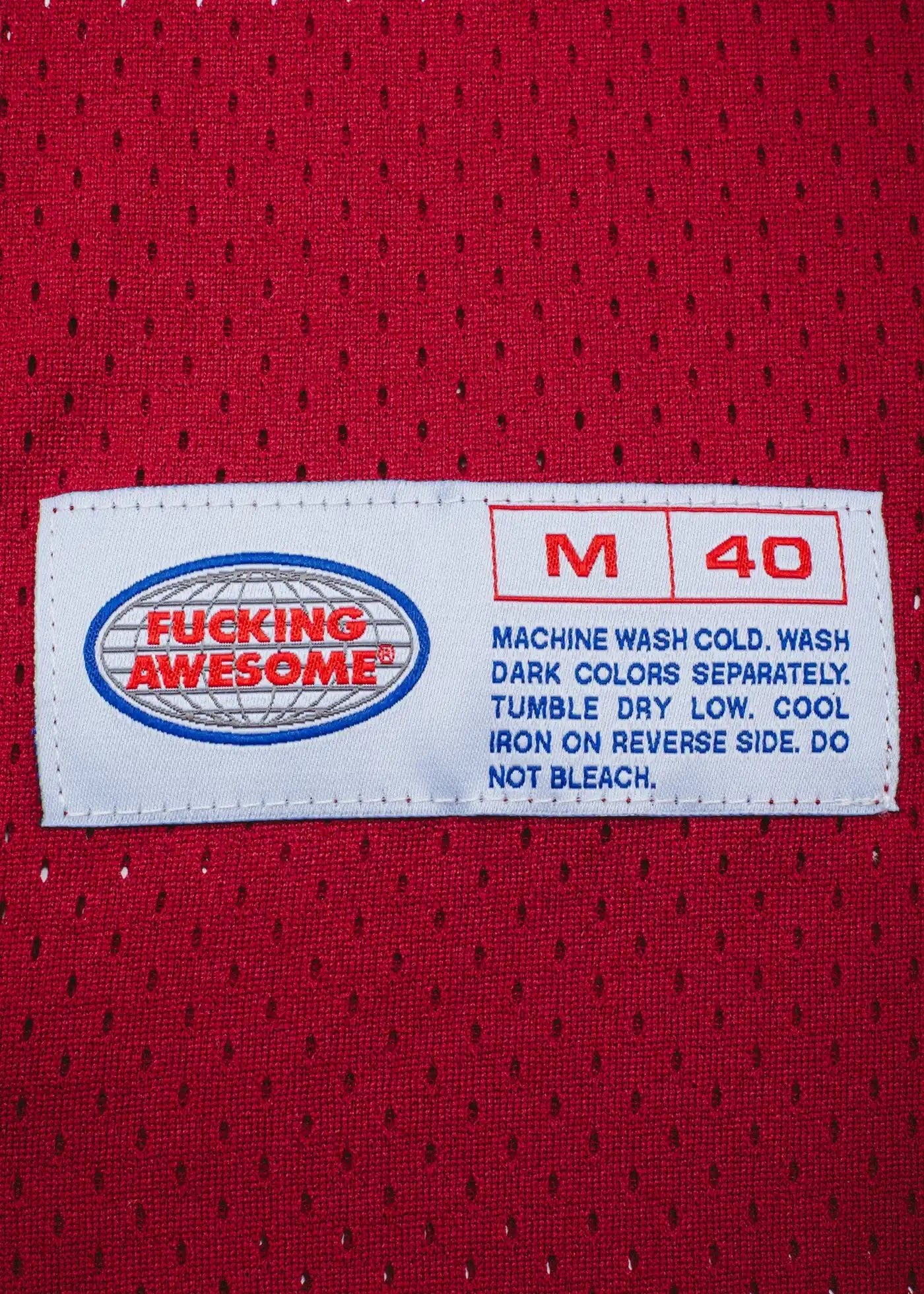 Fucking Awesome logo print front and back, woven label front left.