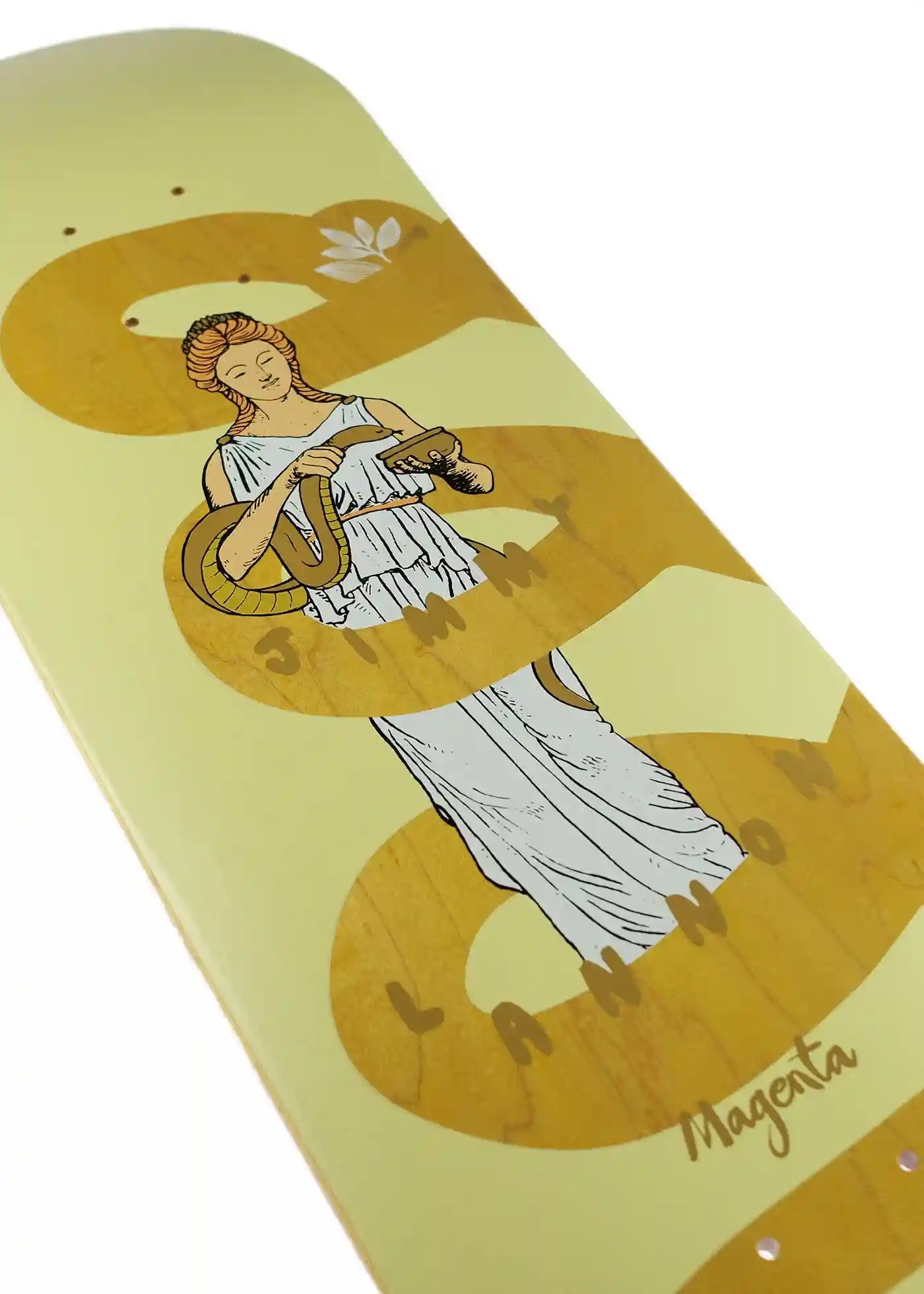The Sacred Snake is a Jimmy Lannon Pro Model Skateboard Deck by Magenta Skateboards.