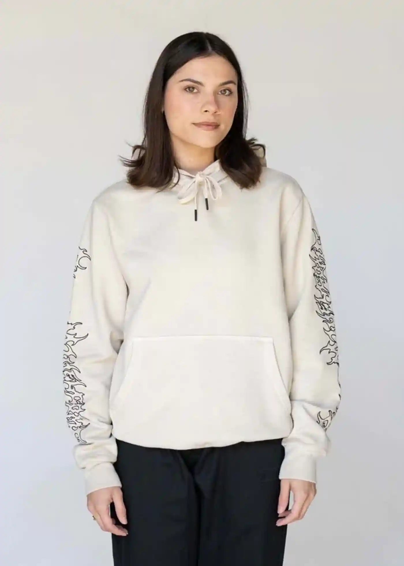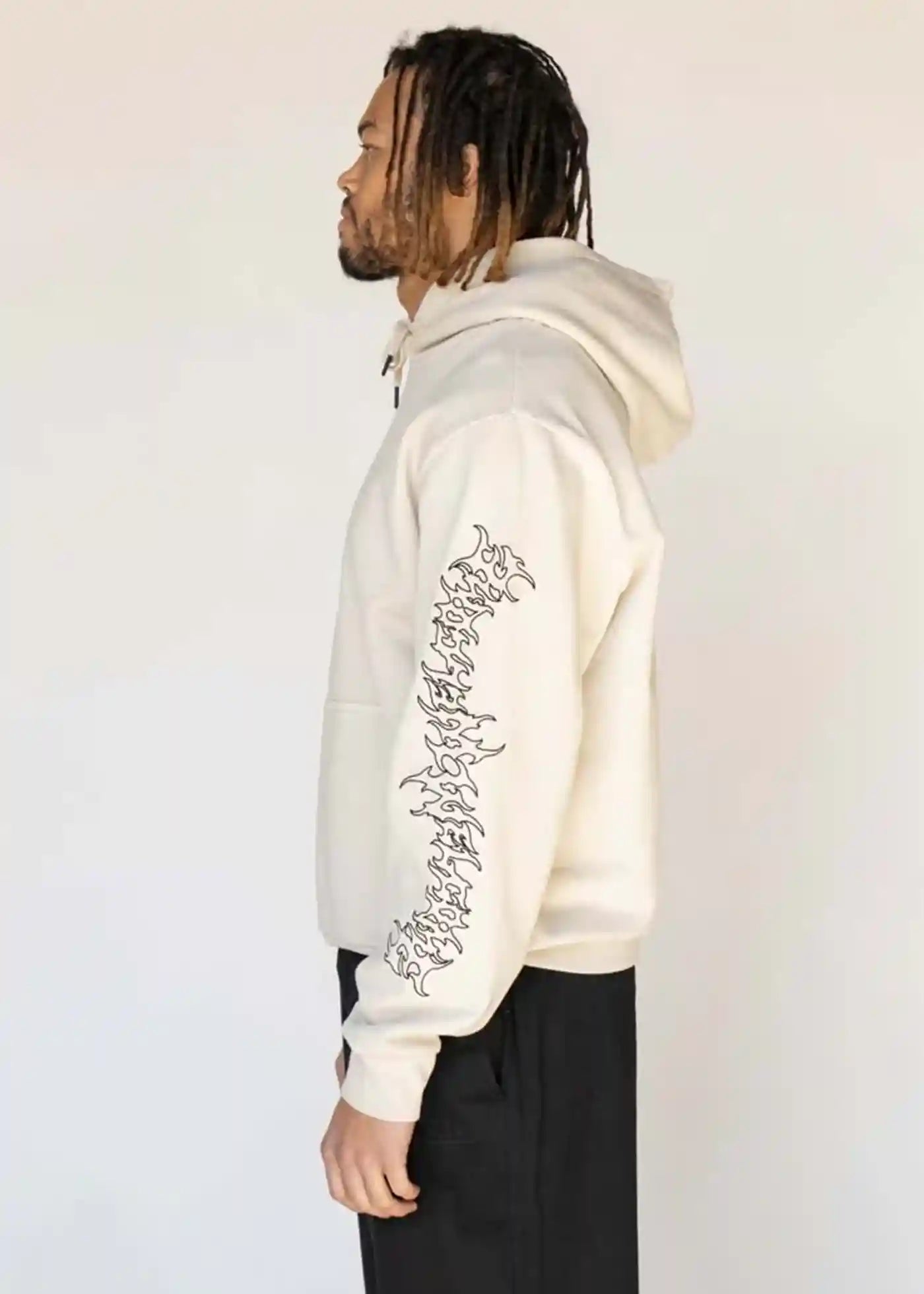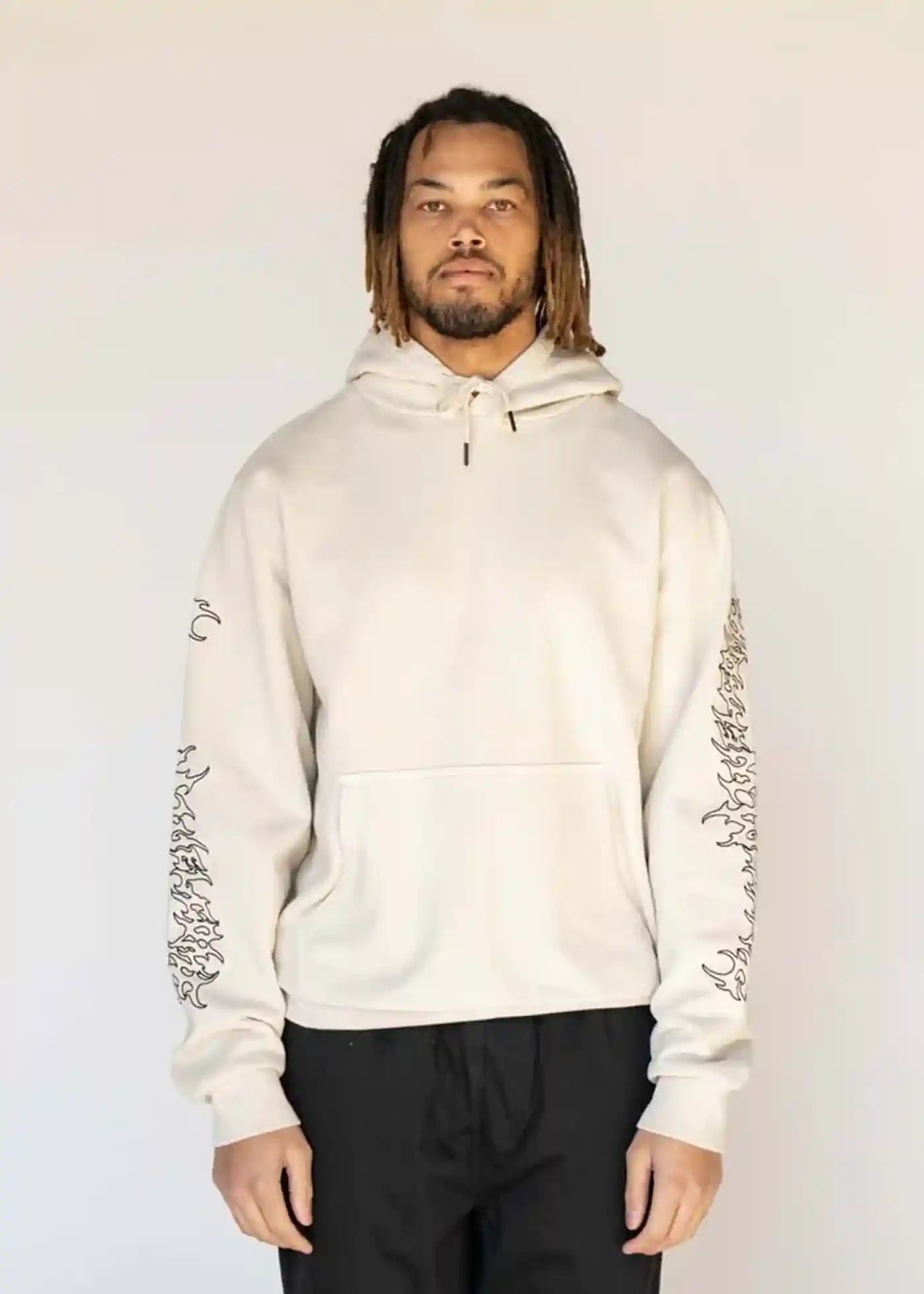 Welcome Barb Sleeve Embroidered Hoodie Bone