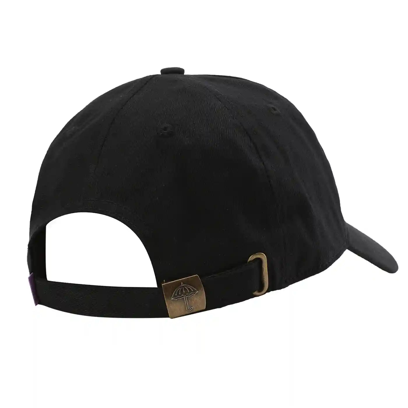 Size-adjustable strap back closure with Hélas Umbrella logo.
