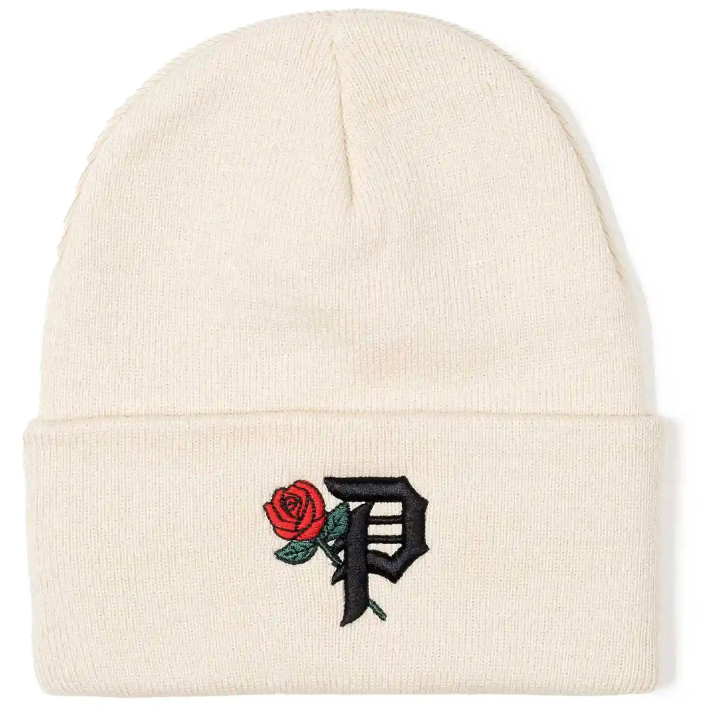 Embroidered Primitive Dirty P logo with rose on front.