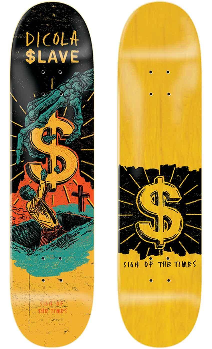 The Sign Of The Times is a Danny Dicola Pro model deck from Slave Skateboards