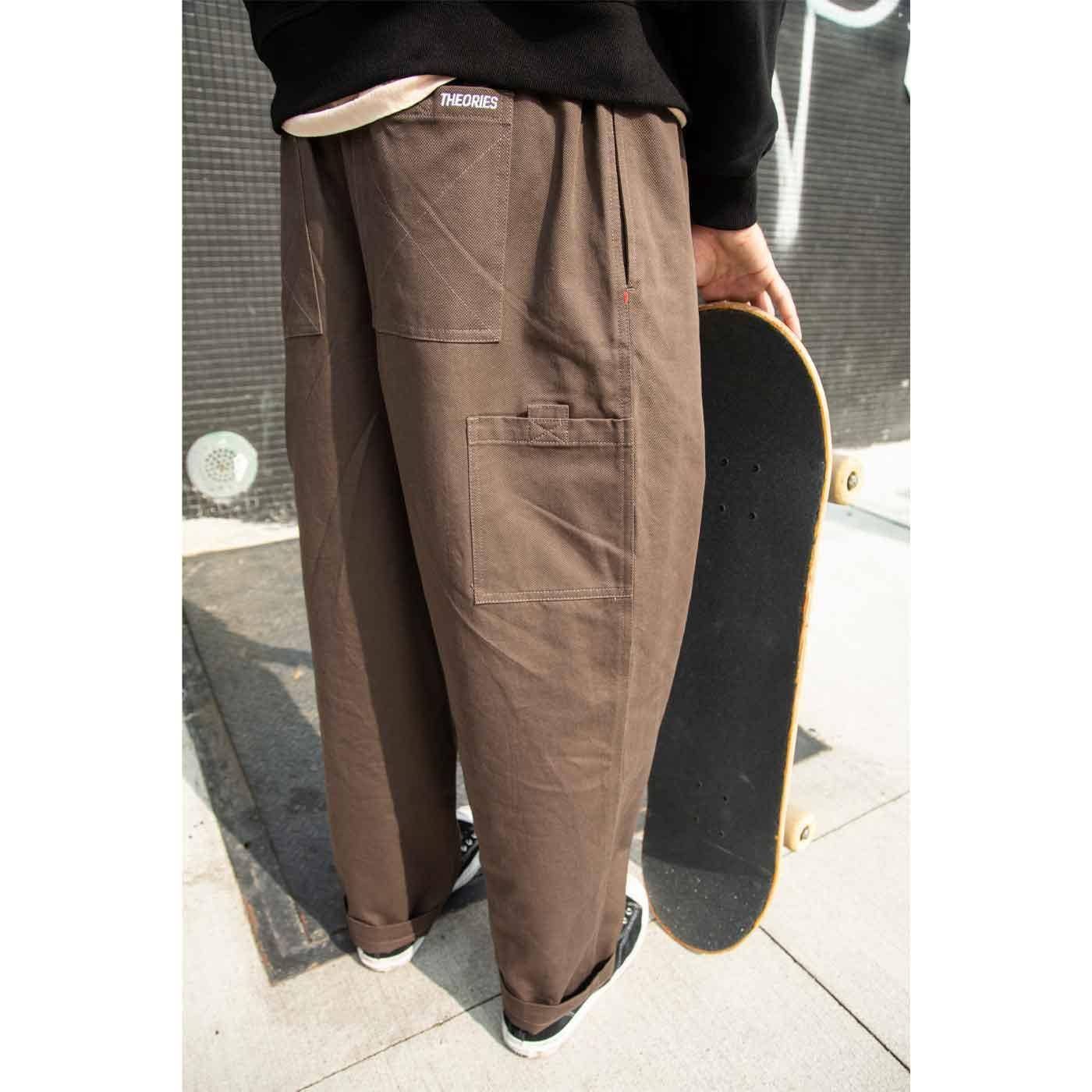 The Stamp Lounge Pants by Theories Skateboards are chino style pants with an elastic waistband and drawstrings