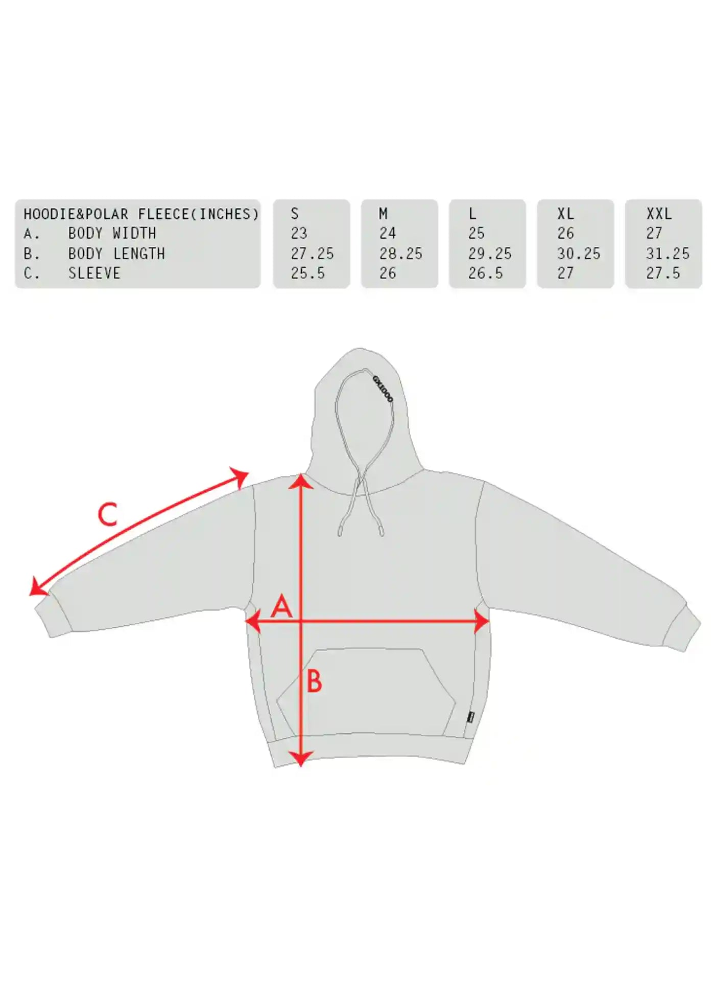 Grand logo GX1000 brodé sur toute la capuche.