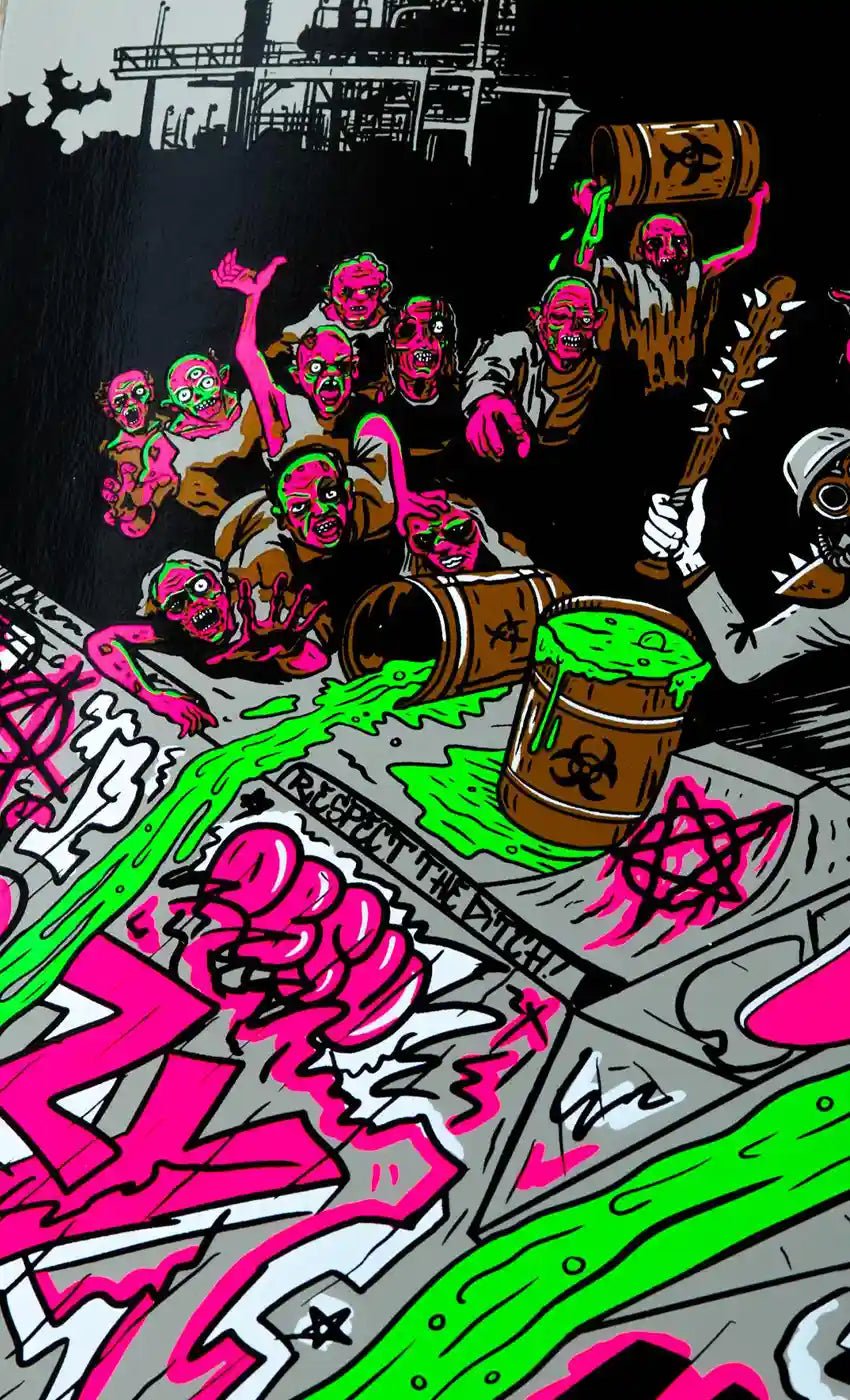 Le Toxic Ditch est une planche de skateboard Ben Raybourn Pro Model de Metal Skateboards.