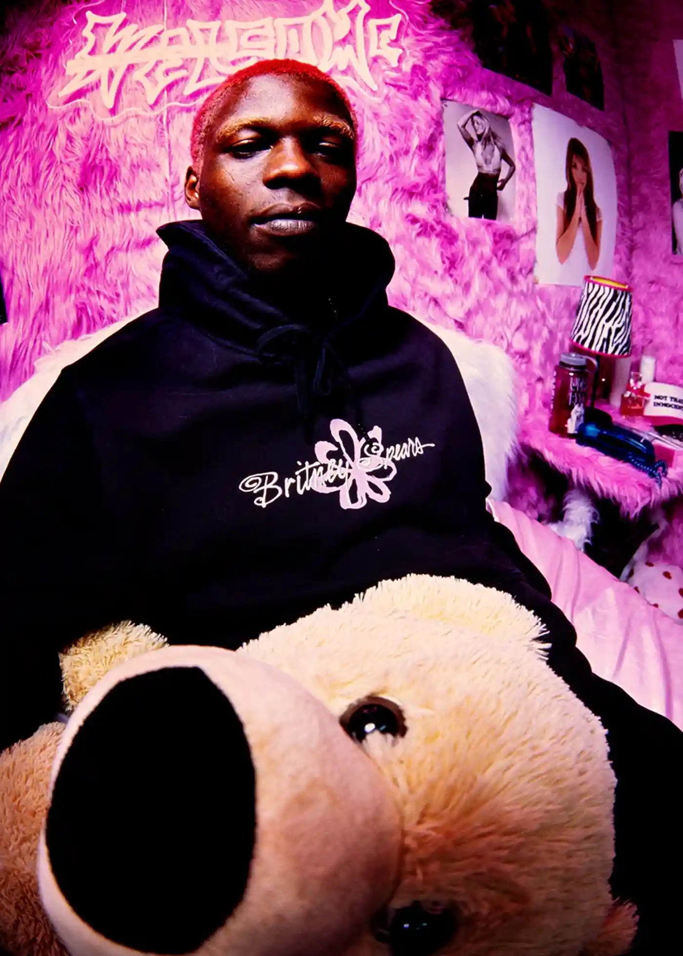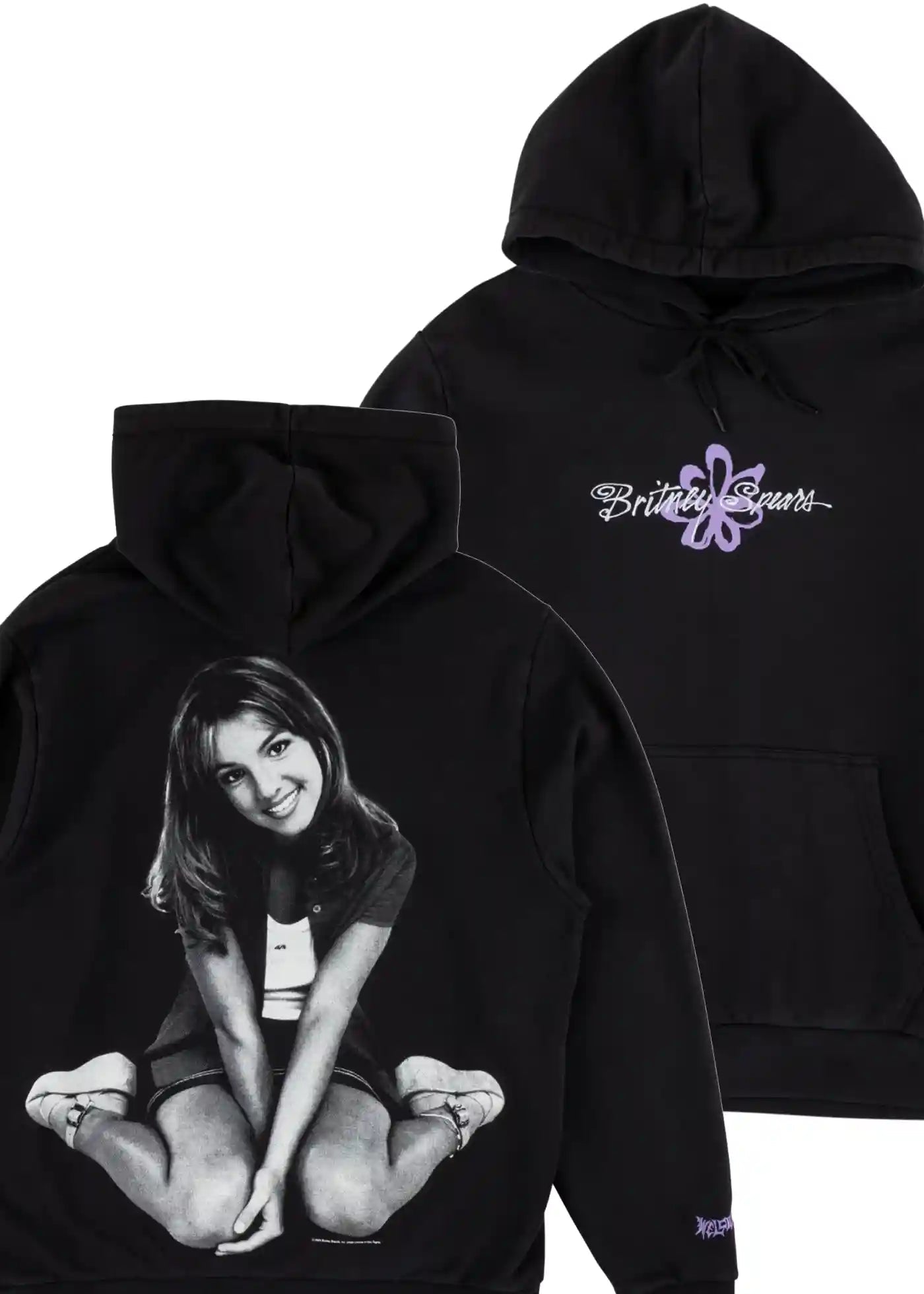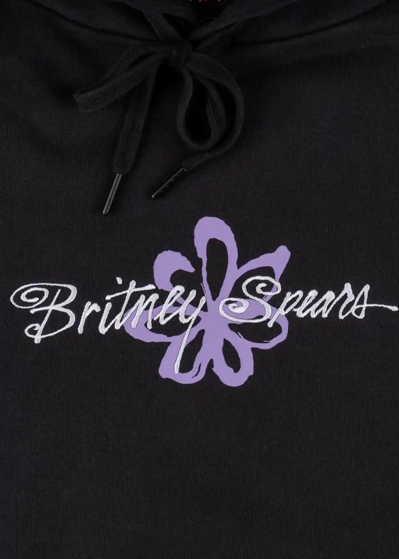Logo fleur Britney Spears imprimé et broderie sur le devant, grand imprimé Britney au dos, logo de bienvenue brodé sur la manche droite.