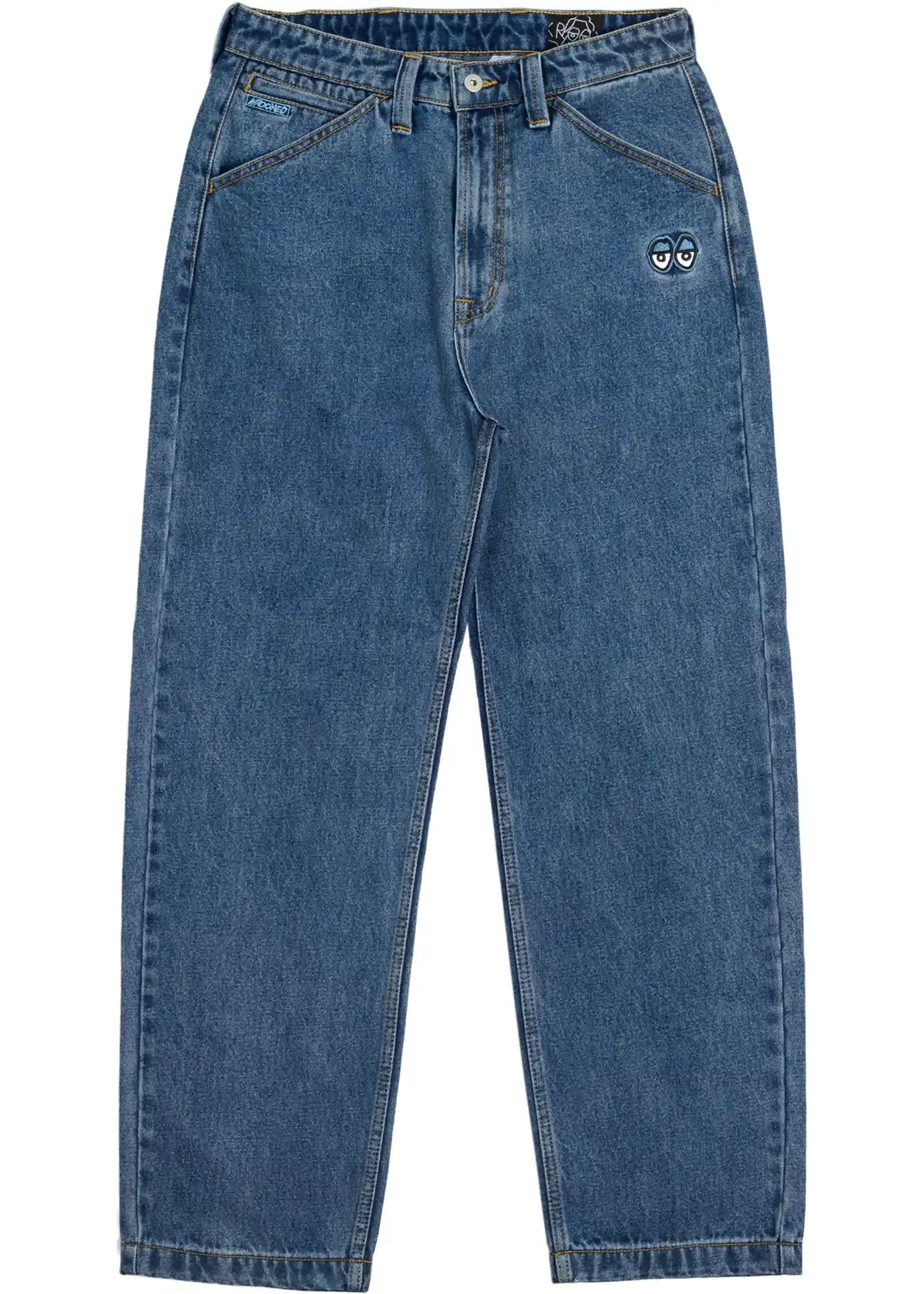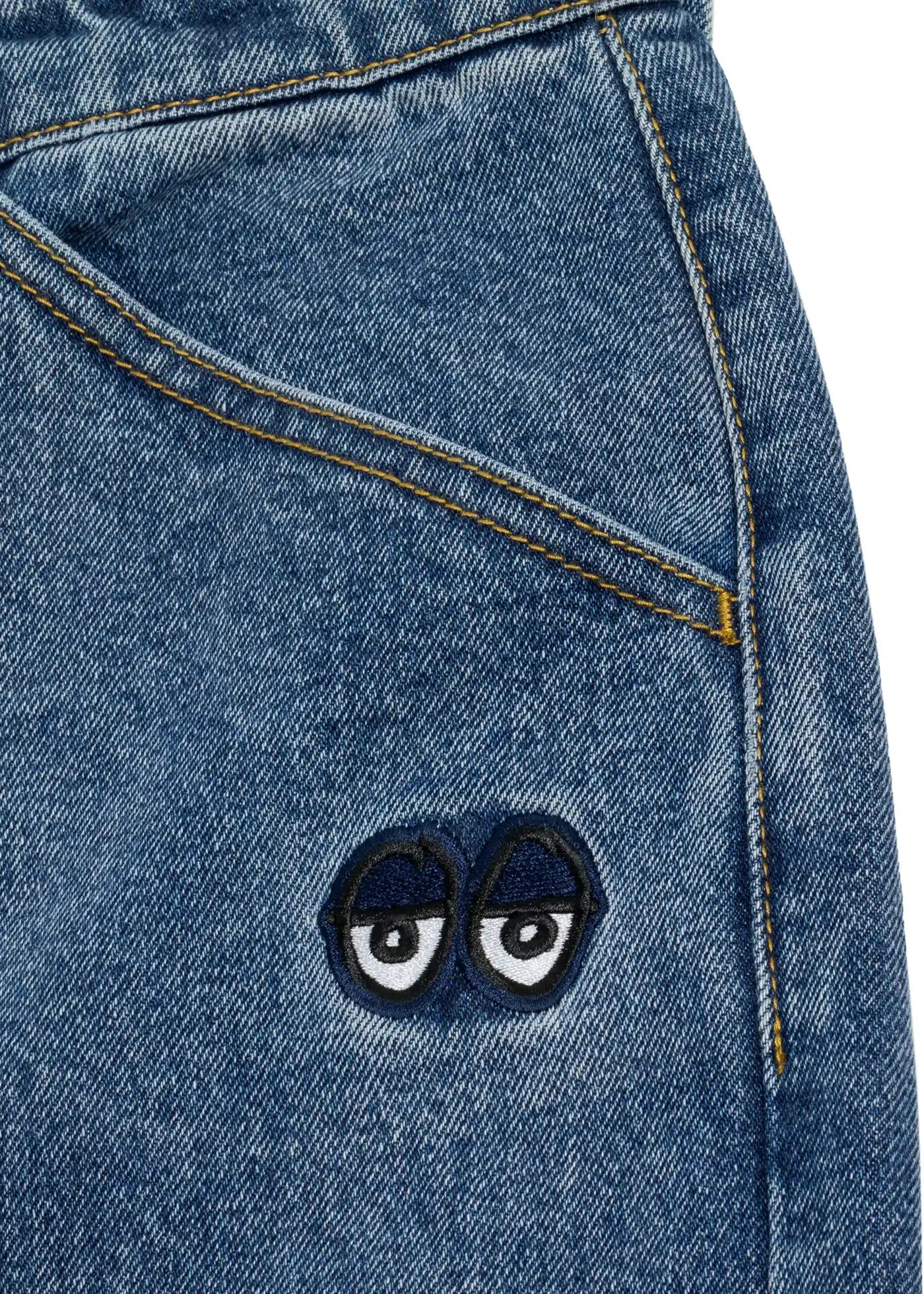 Krooked Eyes Pantalon En Sergé Denim Stonewash Bleu