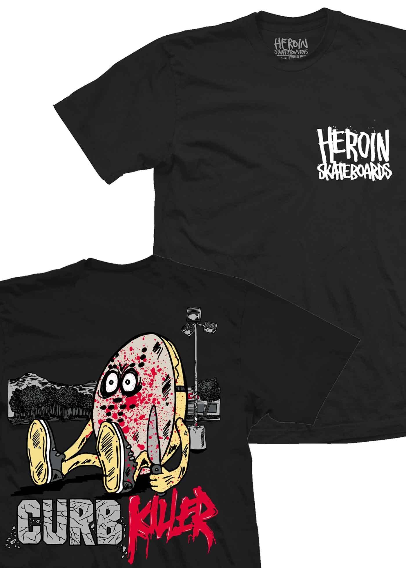 Das Curb Killer II ist ein schwarzes kurzarm T-Shirt von Heroin Skateboards