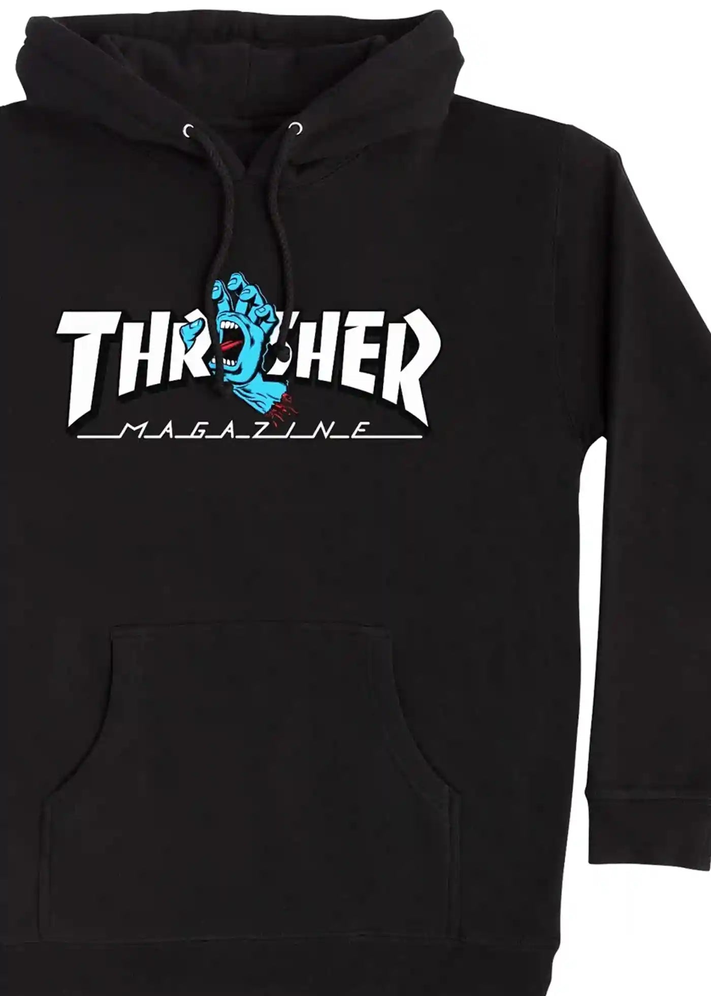 Der Screaming Logo ist ein Kapuzen Pullover Sweatshirt vom Thrasher Magazine aus der offiziellen Zusammenarbeit mit Santa Cruz Skateboards zur Feier deren 50-Jährigen Jubiläums.